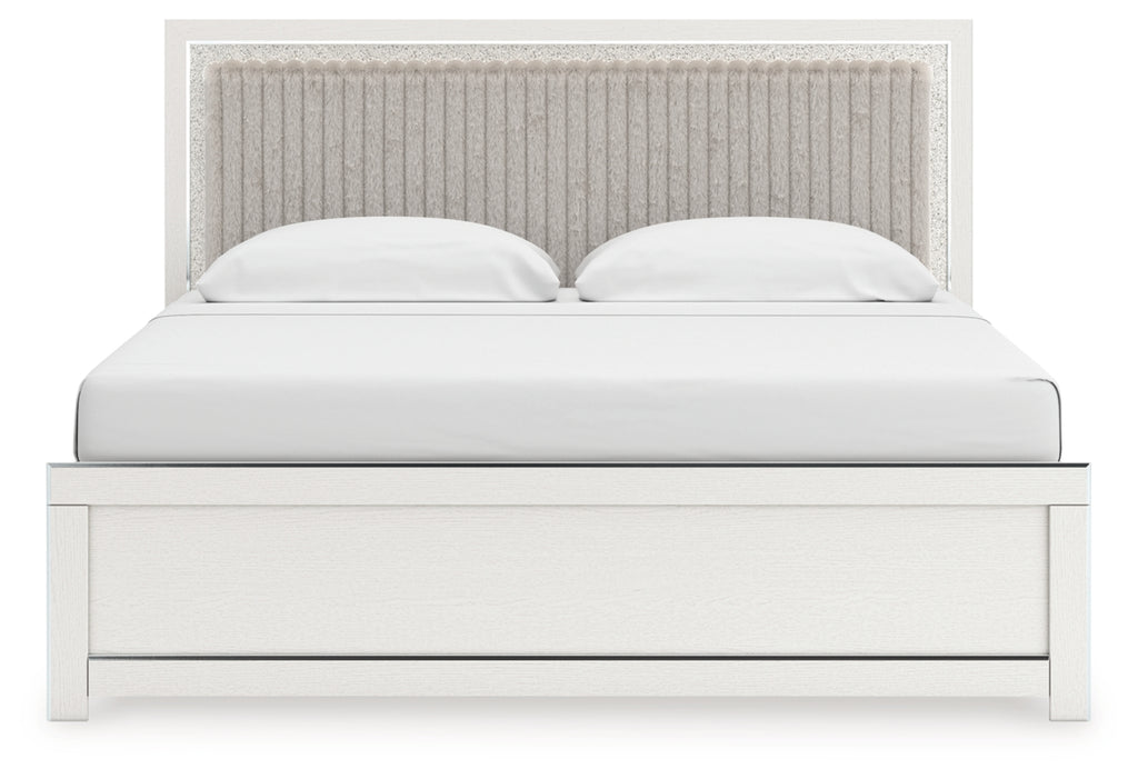 If glitz and glam are your jam, you’re gonna love this queen upholstered panel bed. Gleaming glitter and dazzling chrome-tone touches are paired with tufted gray faux fur for a stunning pop of pizzazz. Loaded with chic flair and serious sparkle, it's a simply splendid way to wake up your inner sanctum’s style.
